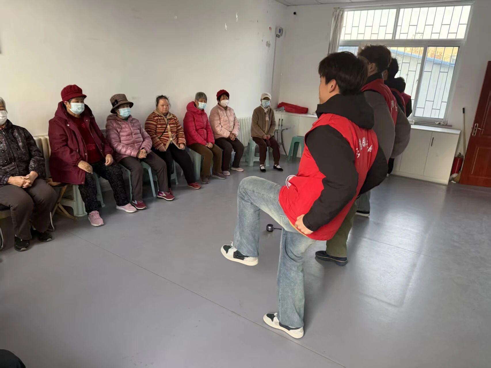 活动伊始,针对老年人群体易出现的肩颈僵硬、脊柱侧弯等体态问题,志愿者们借助AI技术,逐一为老人进行细致检查。并且传授简单易的矫正动作,叮嘱老人日常注意事项,助力老人们改善身体状态。随后,志愿者们带领老人进行趣味健身操环节。考虑到老人身体机能特点,志愿者提前筛选动作舒缓、强度适宜的健身操,现场分解每一个动作要领,从手腕转动、肩部拉伸到腿部屈伸,一步步耐心示范、反复指导。老人们跟着志愿者的节奏缓缓抬手、稳步抬脚,在轻松的运动中活动筋骨,感受运动带来的活力与乐趣,现场氛围格外温馨。活动尾声,志愿者们带来活力四射的健美操表演。整齐有力的动作、昂扬向上的精神面貌,尽显体育学子的青春风采,灵动的步伐与饱满的热情感染着在场每一位老人,现场不时响起阵阵掌声。也让老人们感受到青春活力与生活美好。