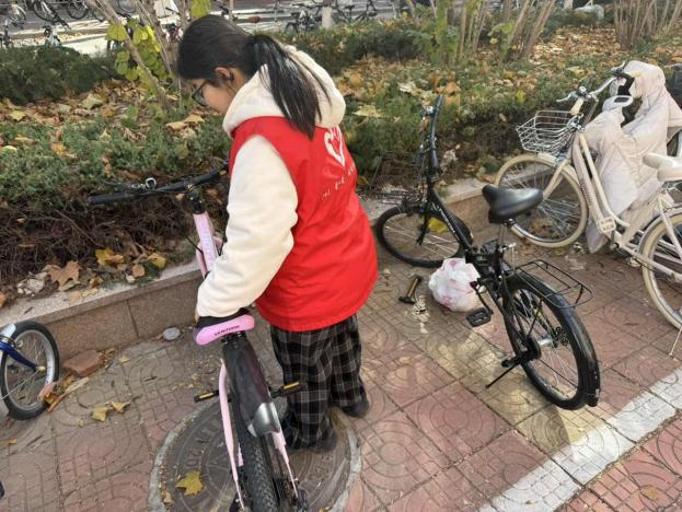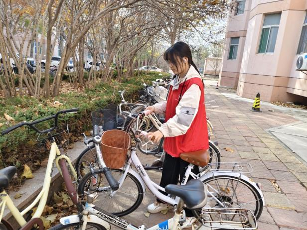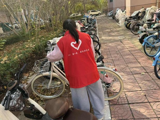 活动中,志愿者们身穿红色马甲,在早、中、晚三个停车高峰时段坚守岗位。大家提前到岗、分工协作,积极引导骑行同学有序停放车辆,协助寻找空余车位,并对阻碍通行的违规停放车辆进行调整。同时,志愿者们主动宣传规范停车理念,耐心劝阻电动车、自行车驾驶人按序停放,有效维护了停车区域的通行秩序。