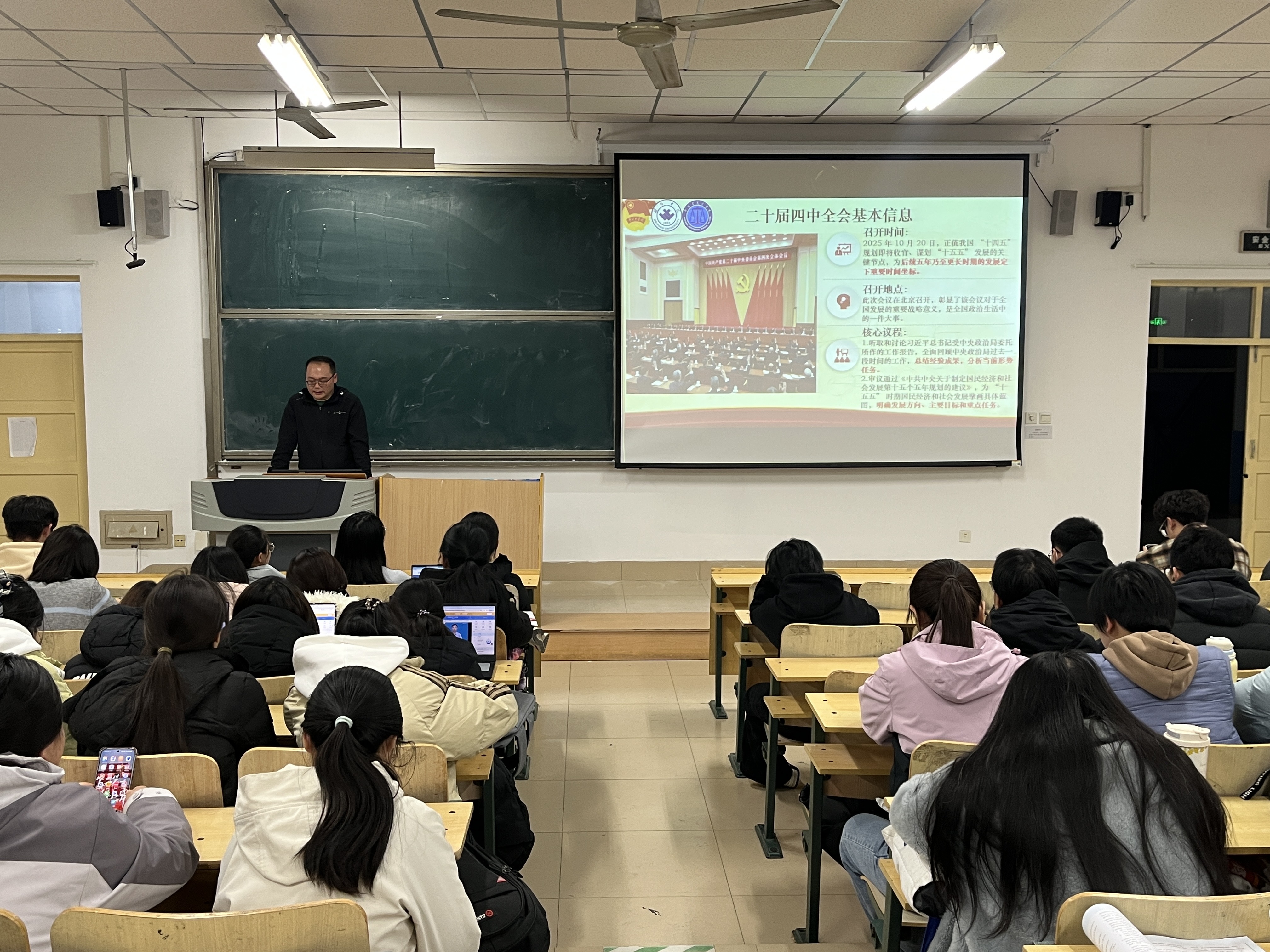 为深入学习党的二十届四中全会精神,切实引导青年学生筑牢思想根基、凝聚奋进力量,12月1日,我院专题开展党的二十届四中全会精神学习主题团课。学院团委负责人刘雪乾主讲,团学组织全体成员参加。