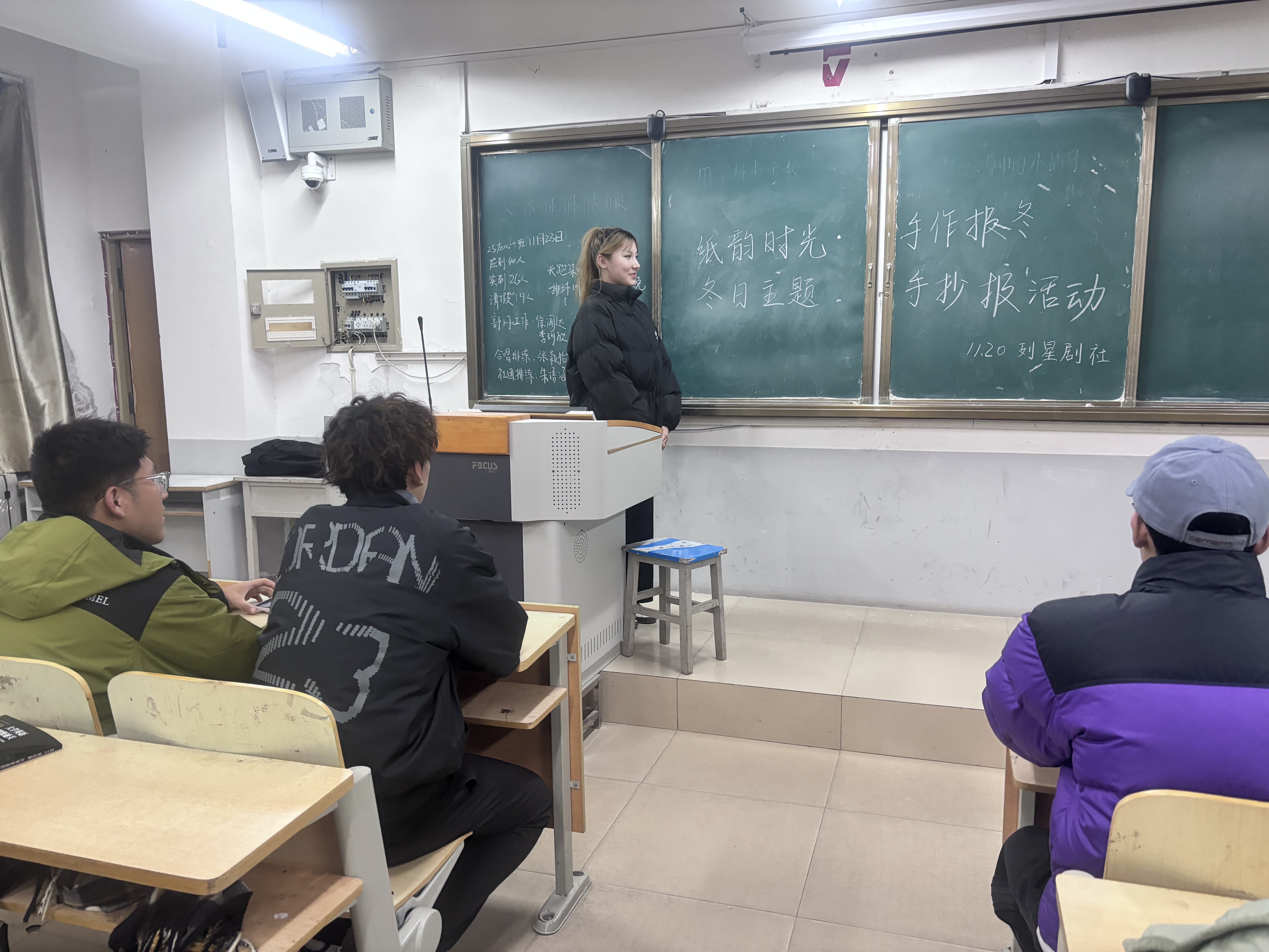 11月23日,教师教育学院(特教幼教师范学院)列星剧社举办“纸韵时光 • 手作报冬”冬日主题手抄报创作活动。同学们围绕冬日节气、民俗风情、校园冬景、暖冬故事四大维度创作,作品设计融合传统与现代风格。现场展示优秀作品并进行互动点评。此次活动,不仅丰富校园文化生活,传承手工艺术,还学子提供展示才华、提升素养的平台。