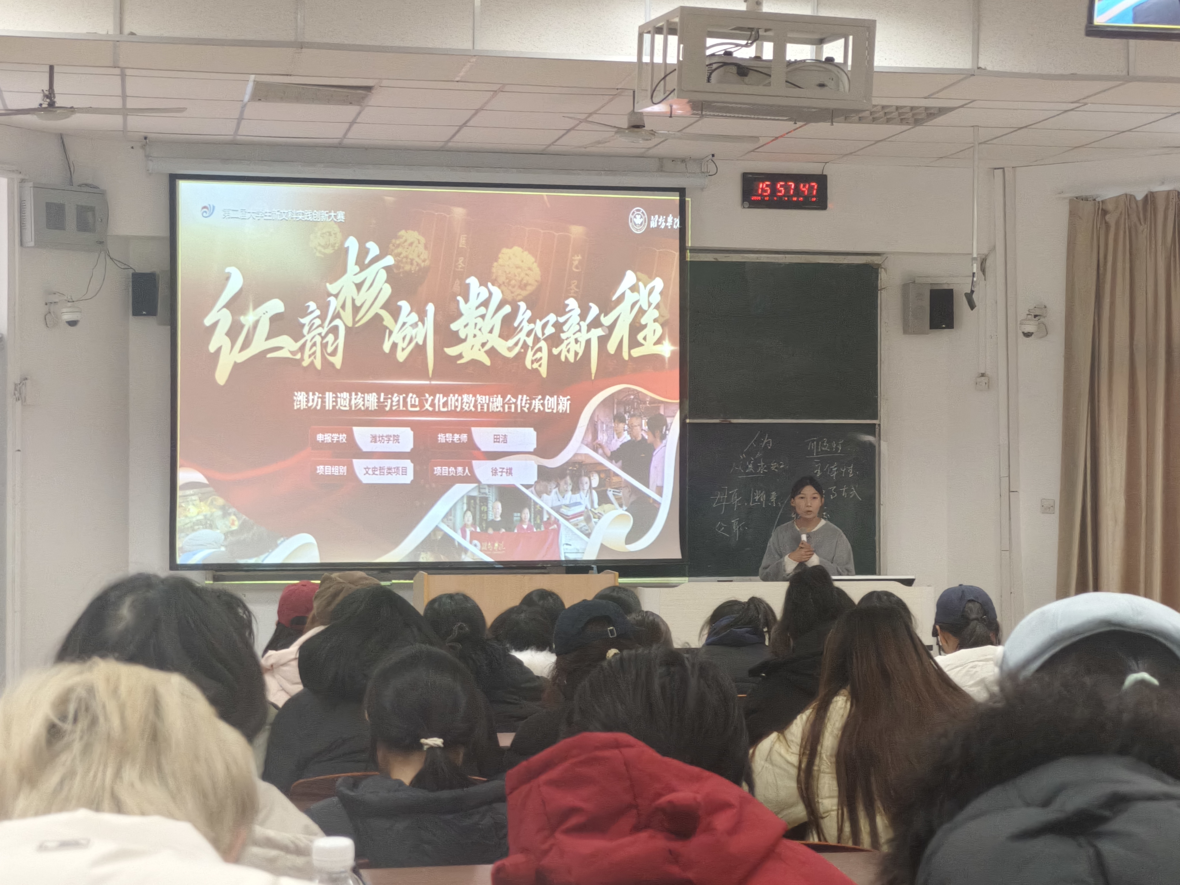 12月4日,由学校团委主办,马克思主义学院承办的青创“潍”来双创大讲堂活动于齐贤楼2210教室举行。活动邀请马克思主义学院马光川教授主讲,学生会双创部负责人徐子棋分享经验,马克思主义学院各年级学生积极到场交流学习。