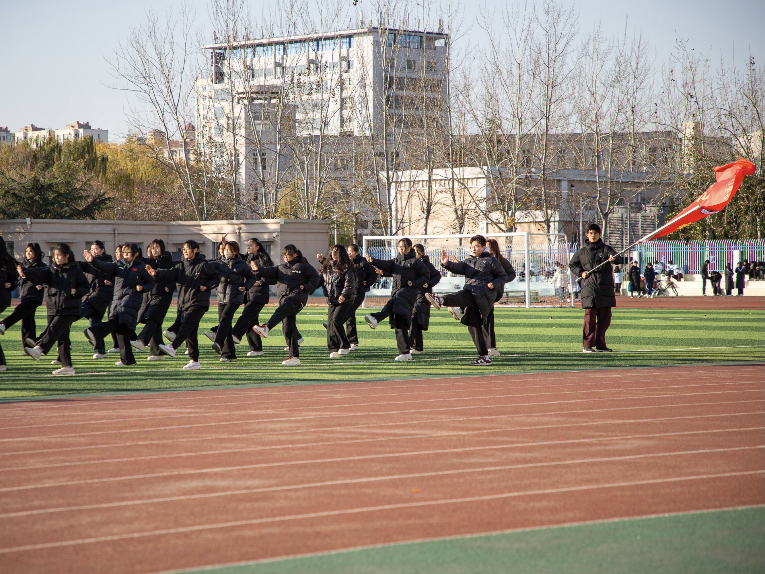 方阵之中,拳势刚健、衔接流畅,一路长拳打得节奏分明、劲道十足。一招一式皆显扎实功底,动静之间既有武术的韵律美感,也体现出大家专注投入、稳扎稳打的训练态度。他们以这场精彩表演,诠释了在反复锤炼中进步、在踏实磨砺中成长的务实品格,更展现出奋发向上、勇于担当的青春风采。