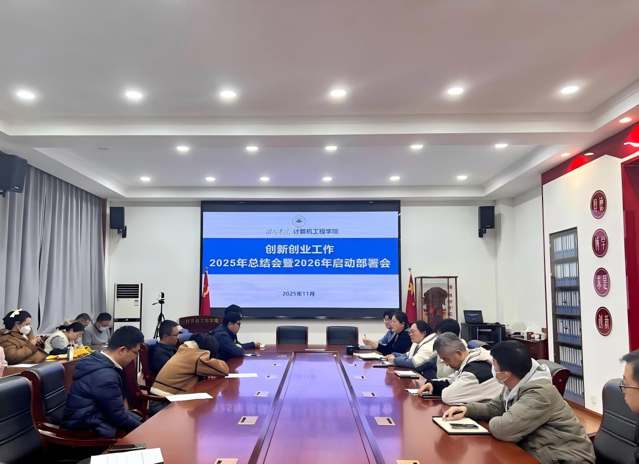 12月7日下午,计算机工程学院创新创业工作2025年总结会暨2026年启动部署会在天一楼7222会议室举行。计算机工程学院党委书记任秀洁出席会议并讲话,全体学生科创赛事指导老师参会,会议以“总结提升、谋篇启新”为主题,为计算机工程学院创新创业教育高质量发展凝聚共识、明晰路径。