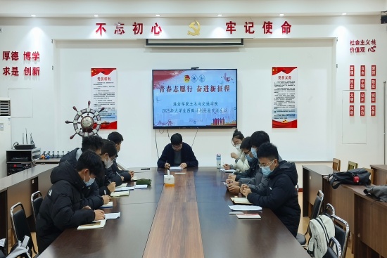 为深入推进大学生西部计划宣传动员工作,传承志愿精神,凝聚青春力量,12月4日晚,土木与交通学院于6104会议室召开“青春志愿行 奋进新征程”大学生西部计划经验交流会议。辅导员杨永武、学生骨干成员出席会议。