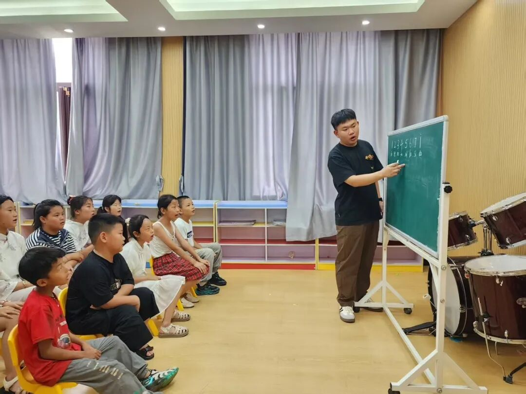 作为一名音乐专业毕业生,胡淼巧妙地将专业特长融入乡村文化建设。在新中国成立75周年之际,他主动请缨担任镇合唱队领唱,助力主题MV录制,并利用专业所长耐心指导队员发声技巧和情感表达:“这里换气要轻柔,节奏再平稳一些。”最终合唱队顺利完成主题MV录制,悠扬的歌声在乡间回荡,收获了村民们的广泛好评。与此同时,他主动成为志愿辅导老师,每周定期到于家丰台“学后家园”,既教孩子们音乐基础理论,组织合唱和乐器体验活动;又结合孩子年龄设计美术课程,引导孩子们描绘家乡田野花草,培养乡土情怀。看到有的孩子不敢下笔,他就用鼓励的话语激发孩子的信心;发现有的孩子想象力丰富,他就引导他们大胆创作,循序渐进引导孩子们感知美术之美。从防火一线的“守护者”到民生服务的“贴心人”,从文化传播的“践行者”到童心培育的“引路人”,胡淼以青春为舟,以实干为桨,将汗水洒向山乡沃土,用专业赋能乡村振兴。这份服务群众的赤诚,正是新时代青年最美的模样——以青春之我,筑振兴之路,让青春之花在基层沃土上绽放出最绚丽的光彩。