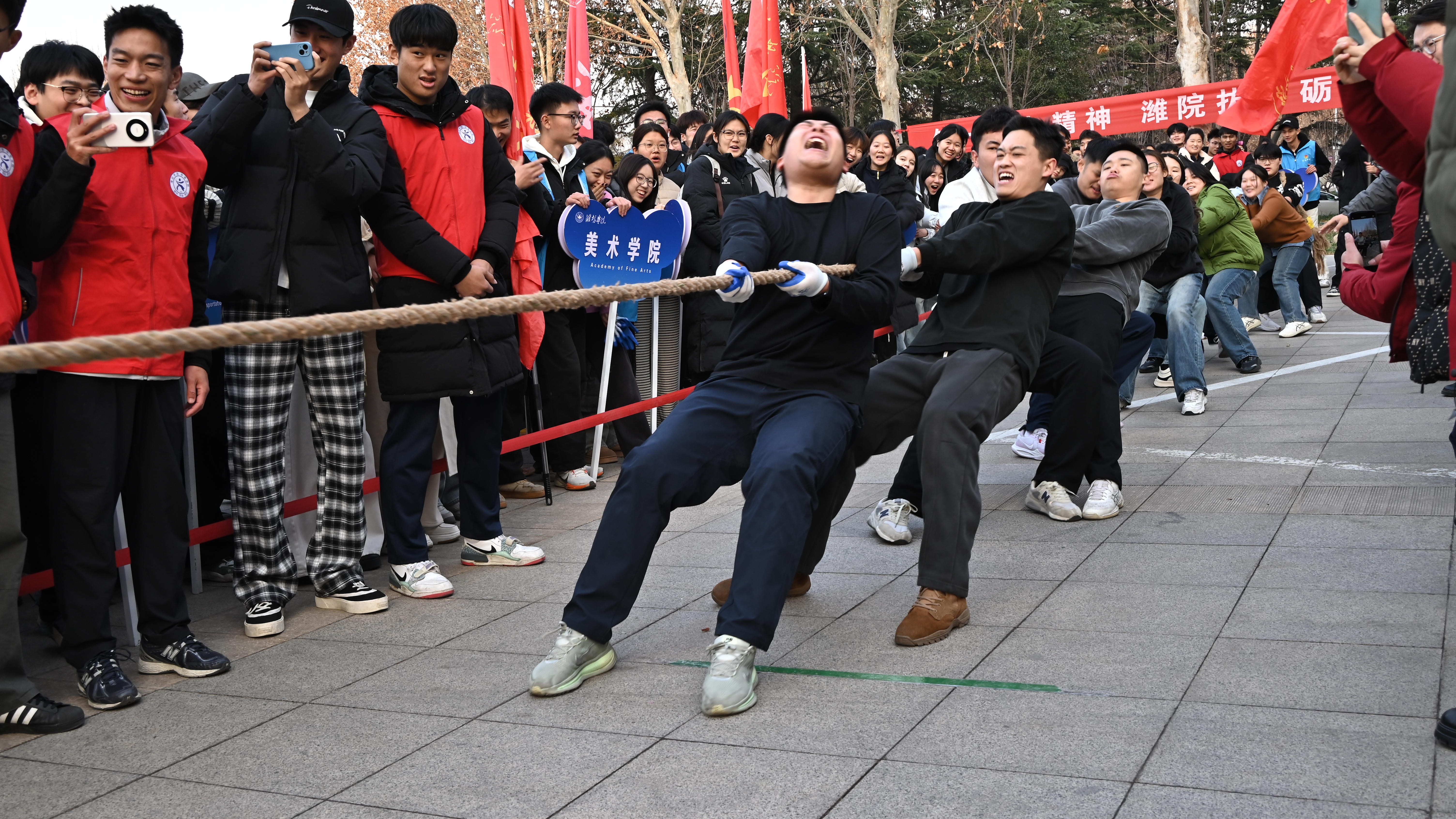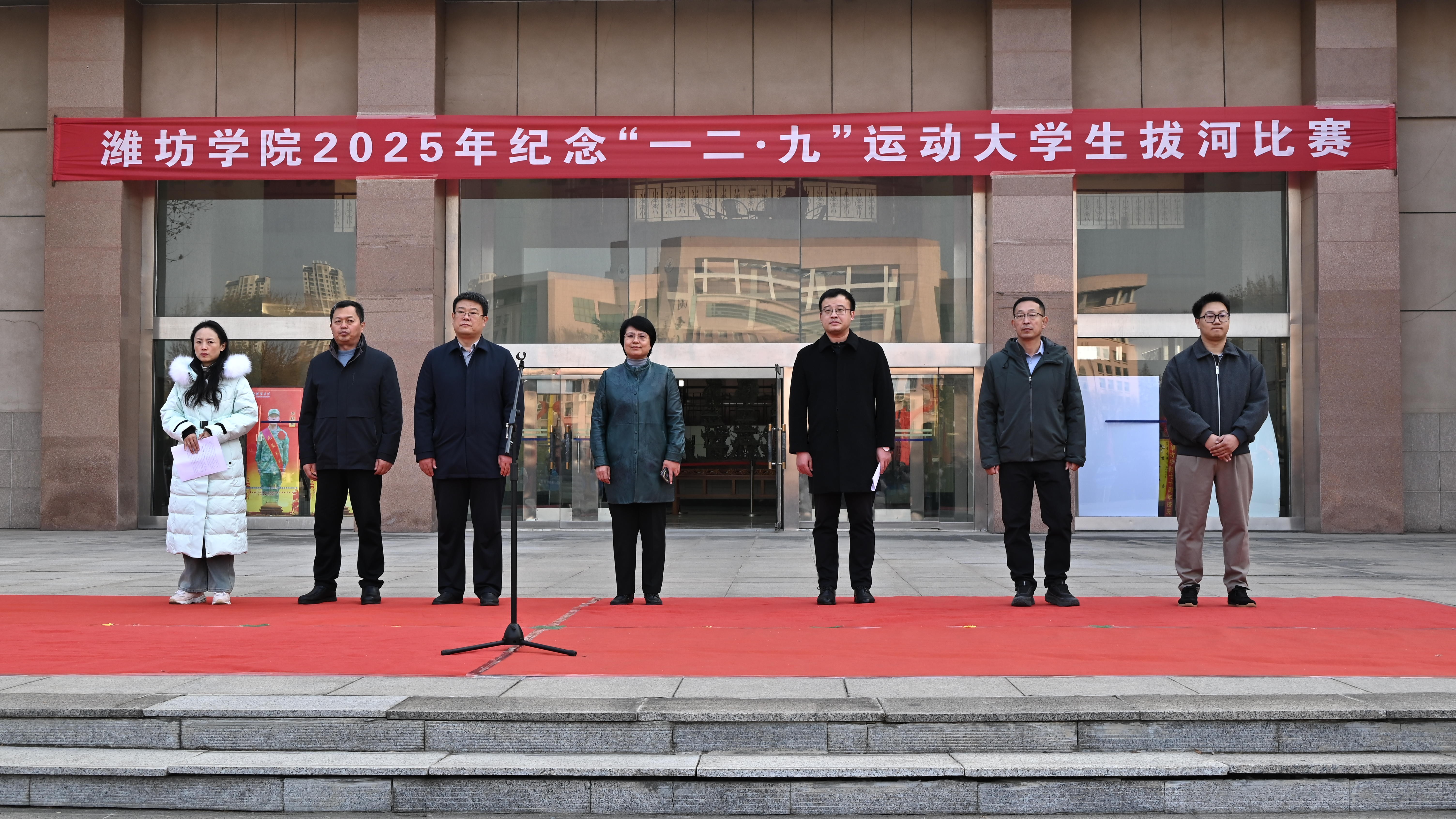 为纪念“一二·九”抗日救亡运动90周年,传承红色基因与爱国精神,潍坊学院于12月9日下午在行政楼后广场举办“挺膺担当 薪火相传”主题拔河比赛。学校党委委员、副校长赵卫红出席并致辞,团委负责人、体育学院师生及20支学院代表队、1支团学组织代表队、千余名师生共同参与。