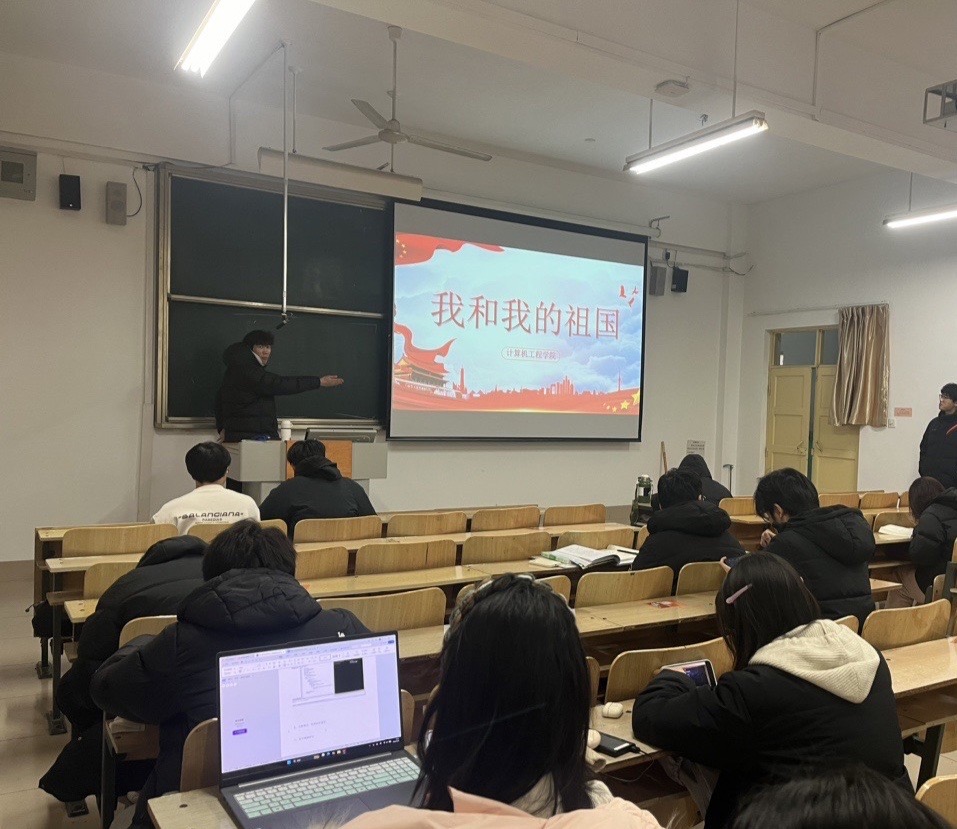 为深入学习宣传贯彻党的二十届四中全会精神,以习近平新时代中国特色社会主义思想凝心铸魂,加强学生团学工作队伍建设,全面提升学生骨干队伍的综合素质和工作能力,计算机工程学院于2025年12月9日在7217教室举行了以“我和我的祖国”为主题的团日活动。本次活动旨在引导广大学生厚植家国情怀,深刻领悟爱国主义的时代内涵,将个人理想融入国家发展大局,以青春之力托举民族复兴梦想。