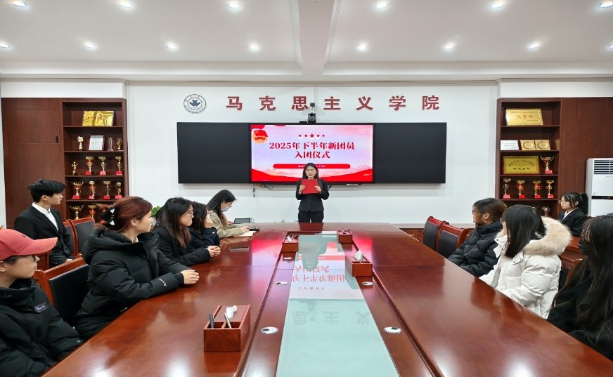 新团员入团仪式于齐贤楼2206会议室举行。仪式在激昂的国歌声中拉开帷幕,孙毓廷宣读新团员名单并为新团员颁发团员证、佩戴团徽。一枚枚熠熠生辉的团徽,不仅是身份的象征,更是一份沉甸甸的责任。在团员代表李烨的领誓下,全体师生面向团旗、高举右拳庄严宣誓。入团介绍人代表孟亭宜宣读《团章》中团员的义务和权利。最后,由新、老团员代表发言,表达了恪守誓言、担当使命的坚定决心。