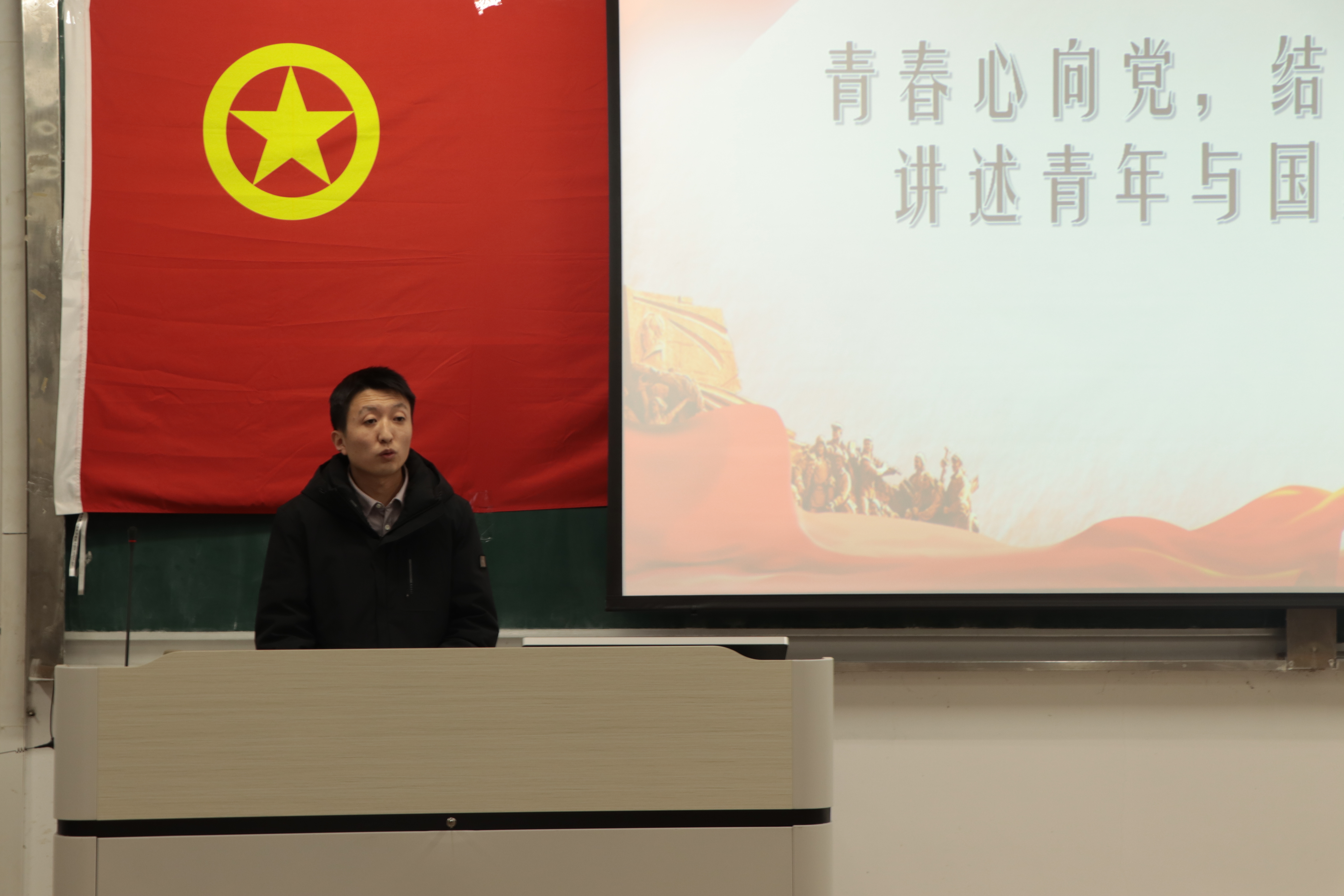 聂国峰代表学院团组织欢迎并祝贺新团员,寄语大家铭记誓言、坚定信念,勤奋学习、练就本领,勇担责任、发挥模范作用,希望大家将个人成长融入国家发展,让青春在奉献中闪光。