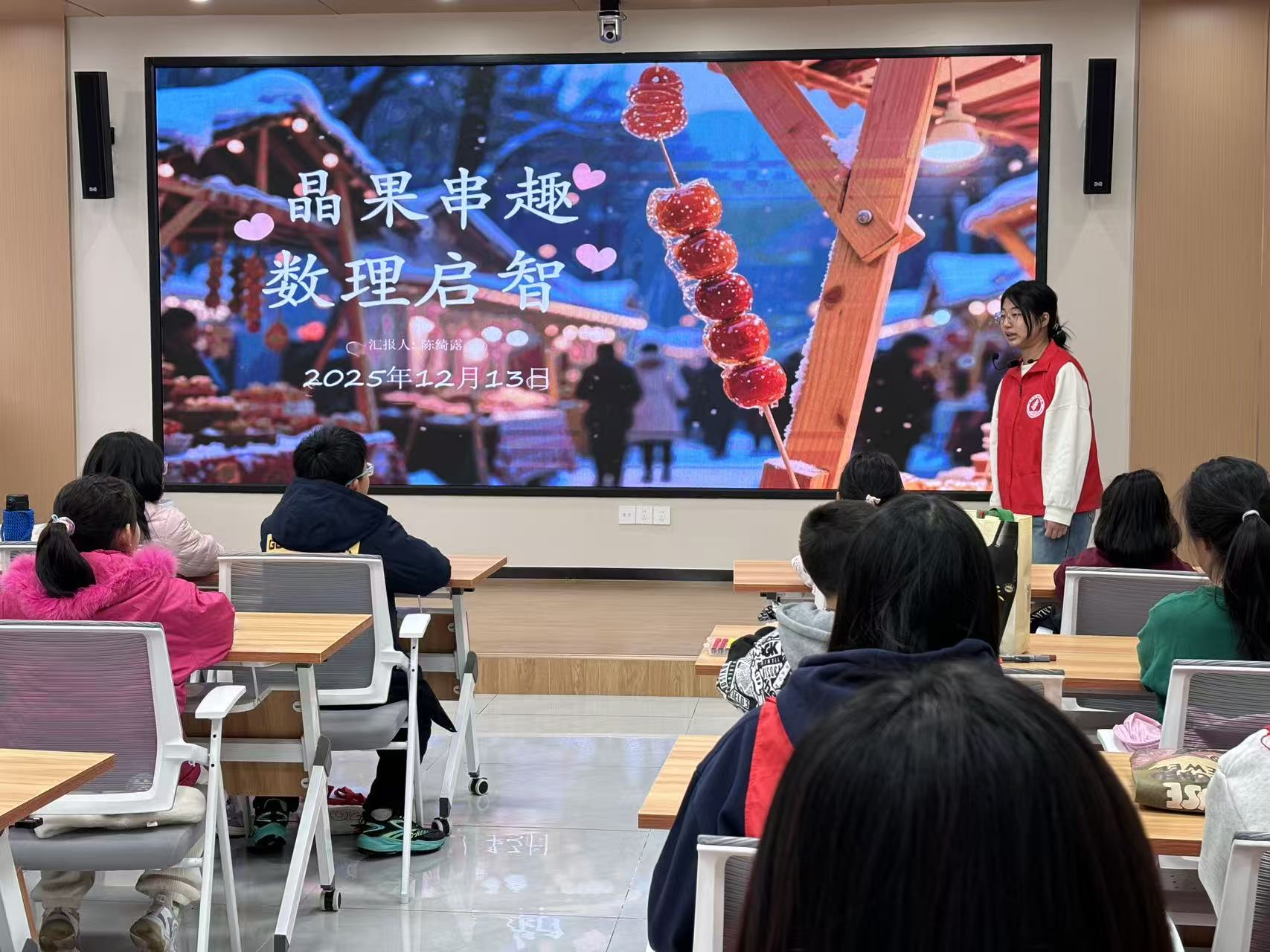 志愿者借助生活化的数学题目、趣味逻辑游戏,向孩子们讲解数理知识的应用与思维方法。孩子们踊跃参与,在积极答题、团队比拼中不仅加深了对数理知识的理解,更在心中悄然种下了热爱数学、主动探索的种子。