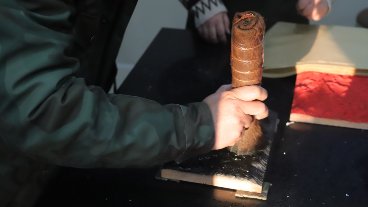 杨杰则为大家展示木版年画的完整制作流程,并手把手指导同学们拓印年画。当一张张色彩鲜艳、充满民俗风情的年画在手中成型,同学们收获了独属于自己的非遗纪念。“这次体验让我们真切触摸到非遗文化的温度,不仅学会了剪纸和木版年画的制作技巧,更对潍坊本土非遗传承有了全新认知。”参与活动的学生感慨道。