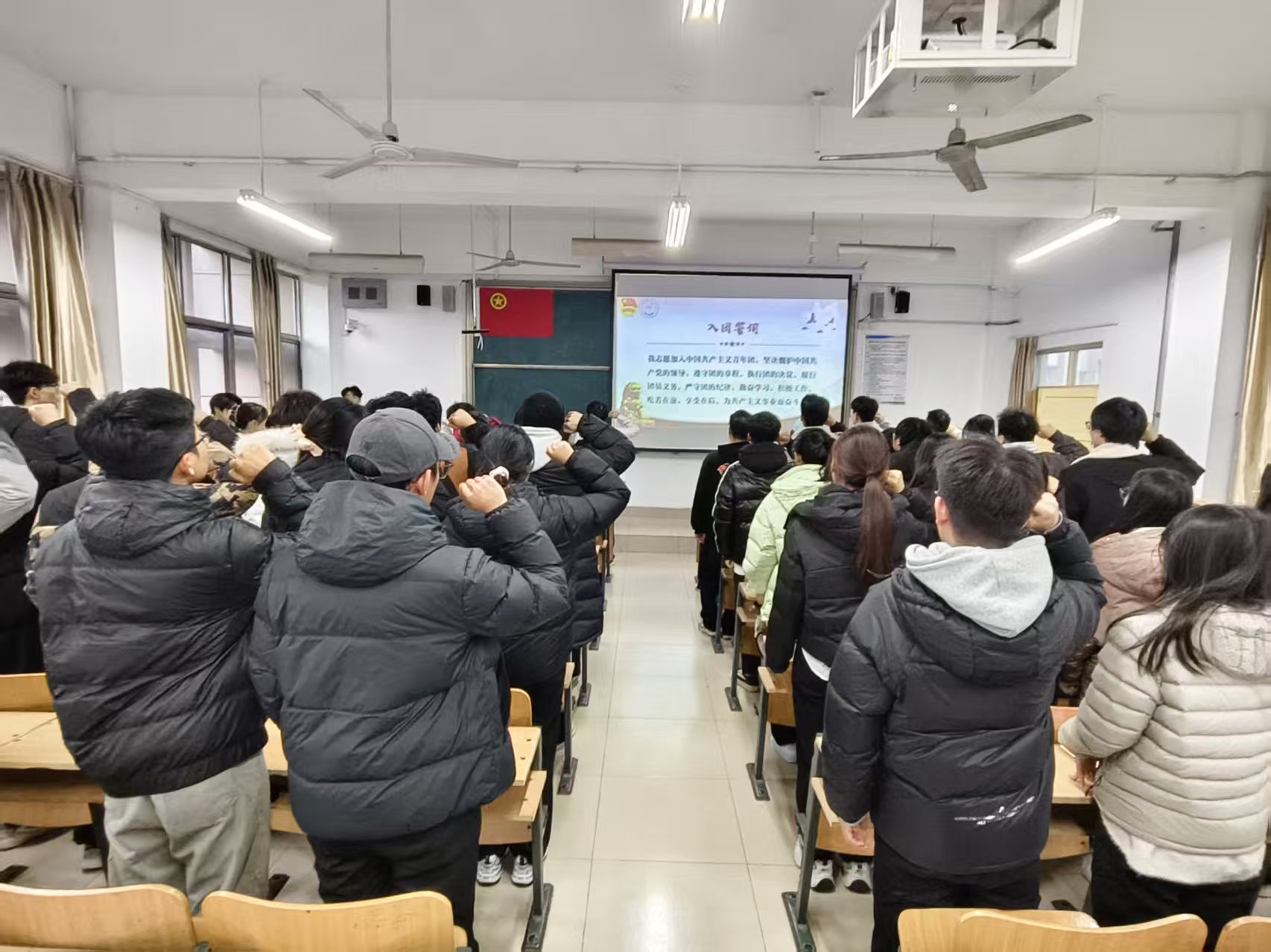 为进一步加强团员队伍建设,强化新发展团员的责任担当意识,12月18日下午,物电学院在天一楼7104室举行2025年下半年新团员入团仪式,学院团委负责人李玉婧、优秀团员代表与全体新发展团员参与。