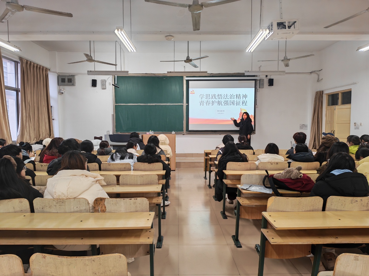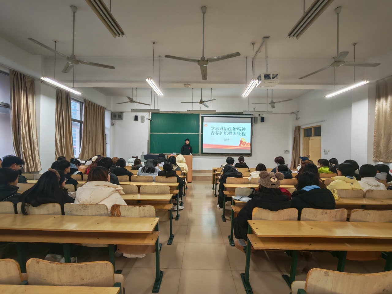 为深入学习贯彻习近平法治思想,切实引导团员青年增强法治观念、提升法治素养,营造浓厚的校园法治氛围,12月22日,马克思主义学院精心策划并举办了一场意义非凡的“学思践悟法治精神,青春护航强国征程”主题团日活动。此次活动得到了马克思主义学院领导的高度重视和大力支持,也吸引了众多团员青年的踊跃参与。