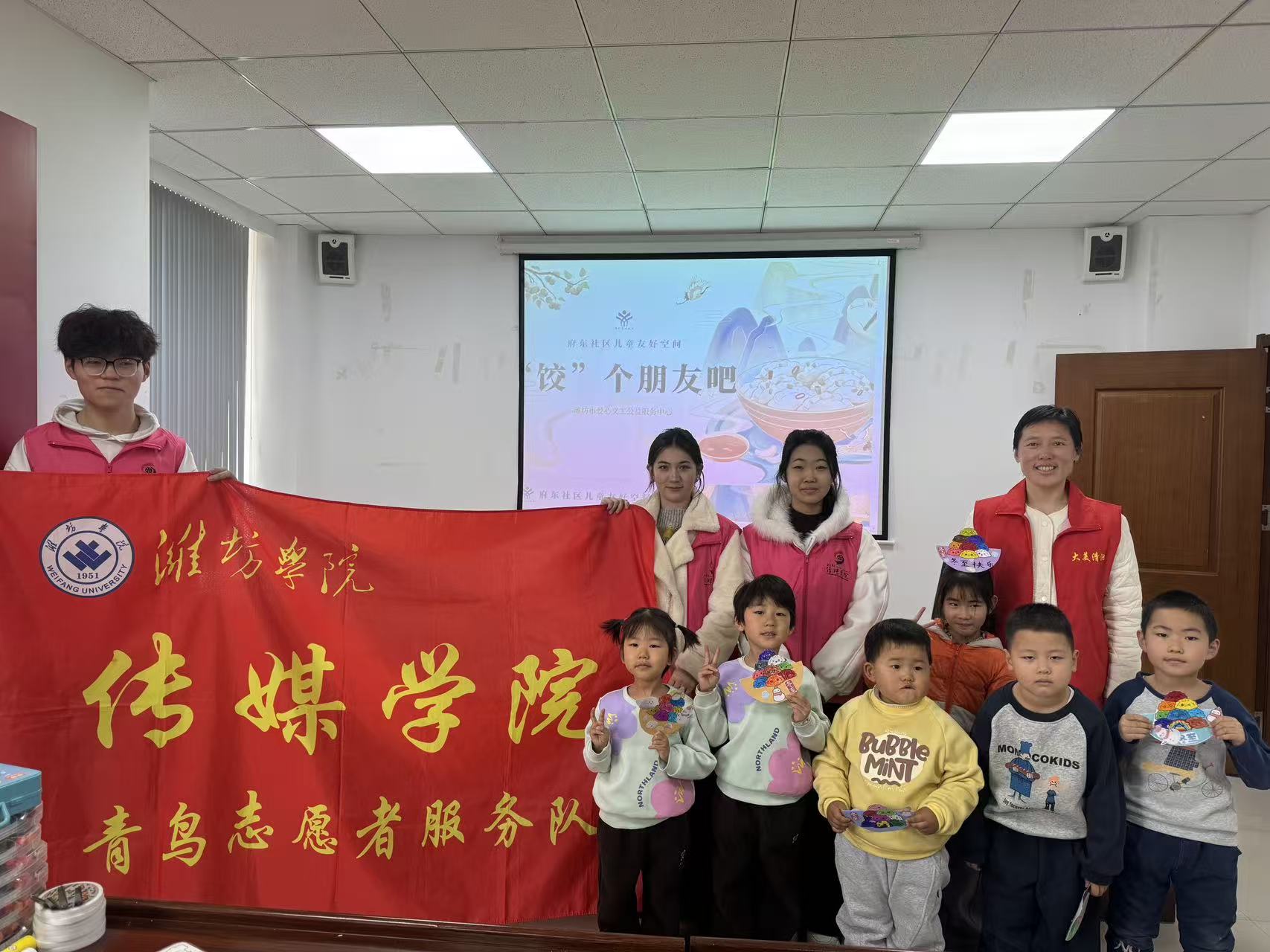 为积极履行社会责任,传递公益温暖,丰富社区儿童课余文化生活,引导孩子们在动手实践中发掘创意潜能、感受创作乐趣和非遗文化的氛围,12月20日上午,传媒学院“青鸟”志愿者服务队走进潍坊市府东社区,开展了孔子学堂手工公益课堂活动。