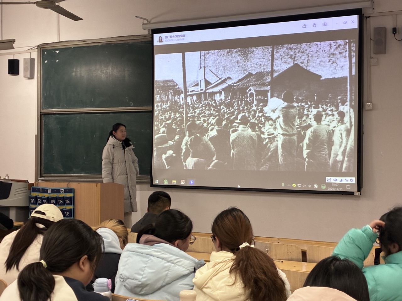 本次主题团日活动以“历史回望+精神传承+时代担当”为主线,通过专题学习、影像观摩、交流研讨、实践倡议等多形式展开,构建了沉浸式、互动式的教育体系。在专题学习环节,各团支部带领同学们回顾了“一二·九”运动爆发的历史背景、发展历程和深远影响,重温了那段青年学子为拯救民族危亡、捍卫国家尊严而英勇抗争的烽火岁月,深刻感悟“天下兴亡,匹夫有责”的爱国情怀和“挺身而出、不畏强权”的斗争精神。