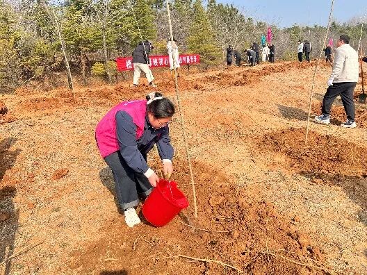 在林场专业人员指导下,志愿者们分工协作、默契配合,有序完成铲土、扶苗、培土、浇灌等植树流程,严格把握栽种质量,确保幼苗成活。植树完成后,大家共同为新苗浇下定根水,并挂上专属标识牌,写下绿色寄语,让幼苗有了专属“身份”。