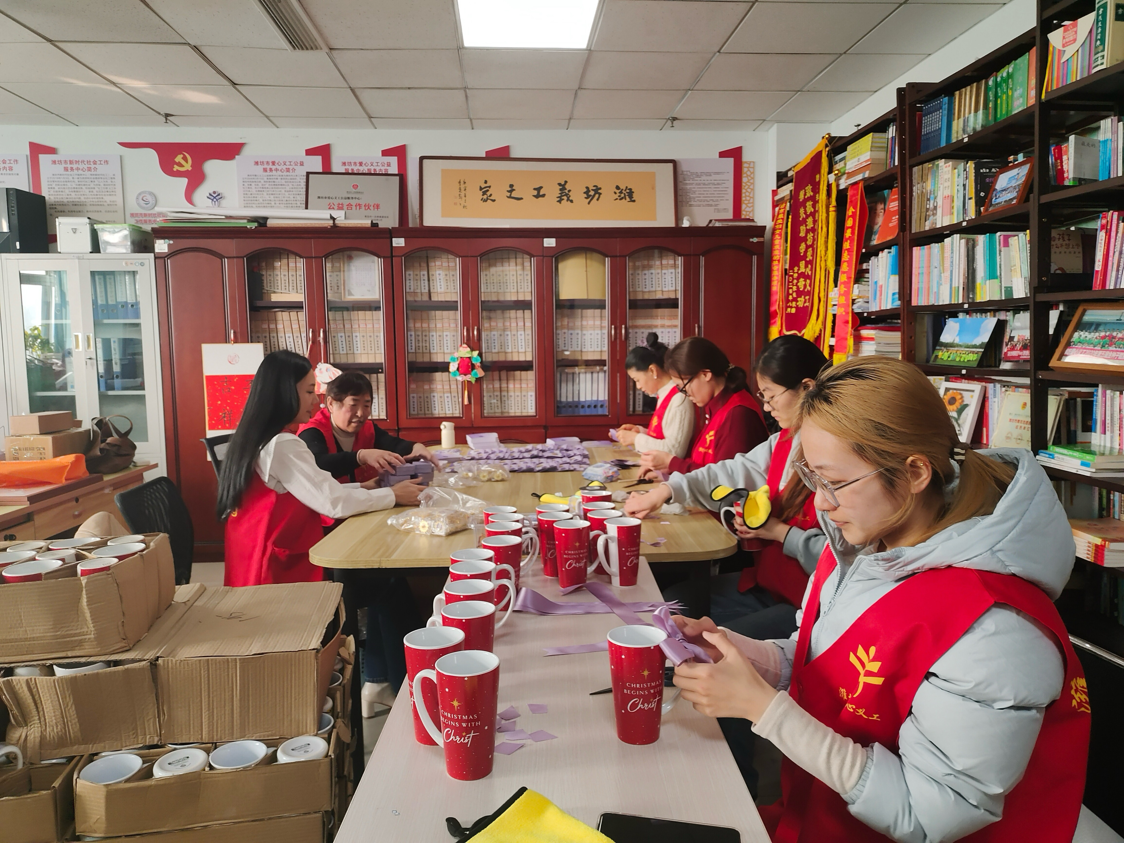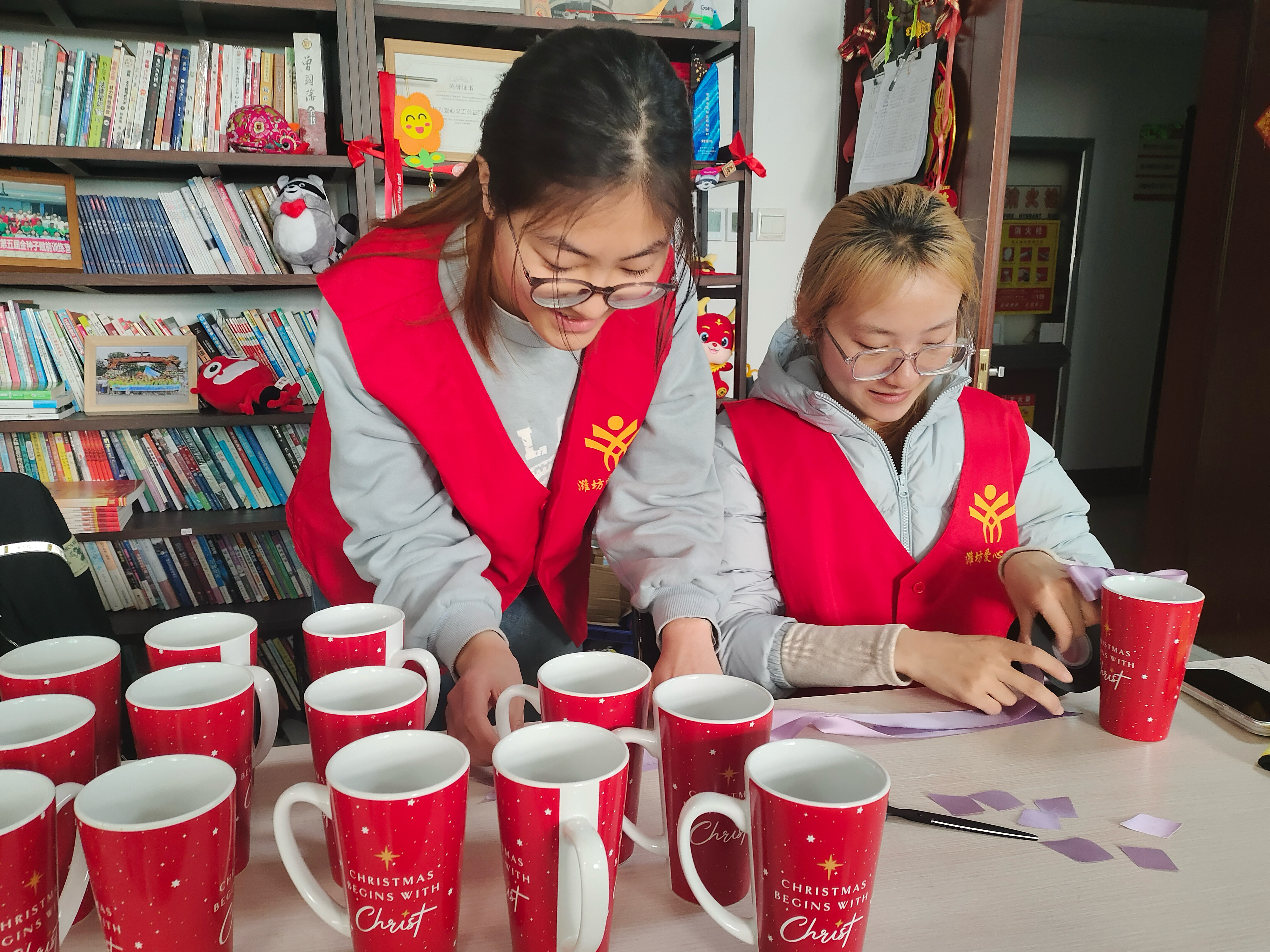 活动当天,参与爱心义工20周年庆筹备工作的志愿者们准时抵达服务地点,在工作人员的统一指导下分工协作、有序开展物资整理工作。大家以饱满的热情和严谨细致的态度,认真完成感谢卡折叠、徽章分装、杯子装饰等各项任务,一件件承载着感恩与祝福的物资顺利成型,为周年庆活动增添了浓厚的温暖氛围与庄重仪式感。志愿者们以认真负责的实际行动传递温暖与善意,充分展现了当代大学生积极向上、乐于奉献的精神风貌,其扎实高效的筹备工作也得到了爱心义工公益服务中心工作人员的一致认可与高度评价。