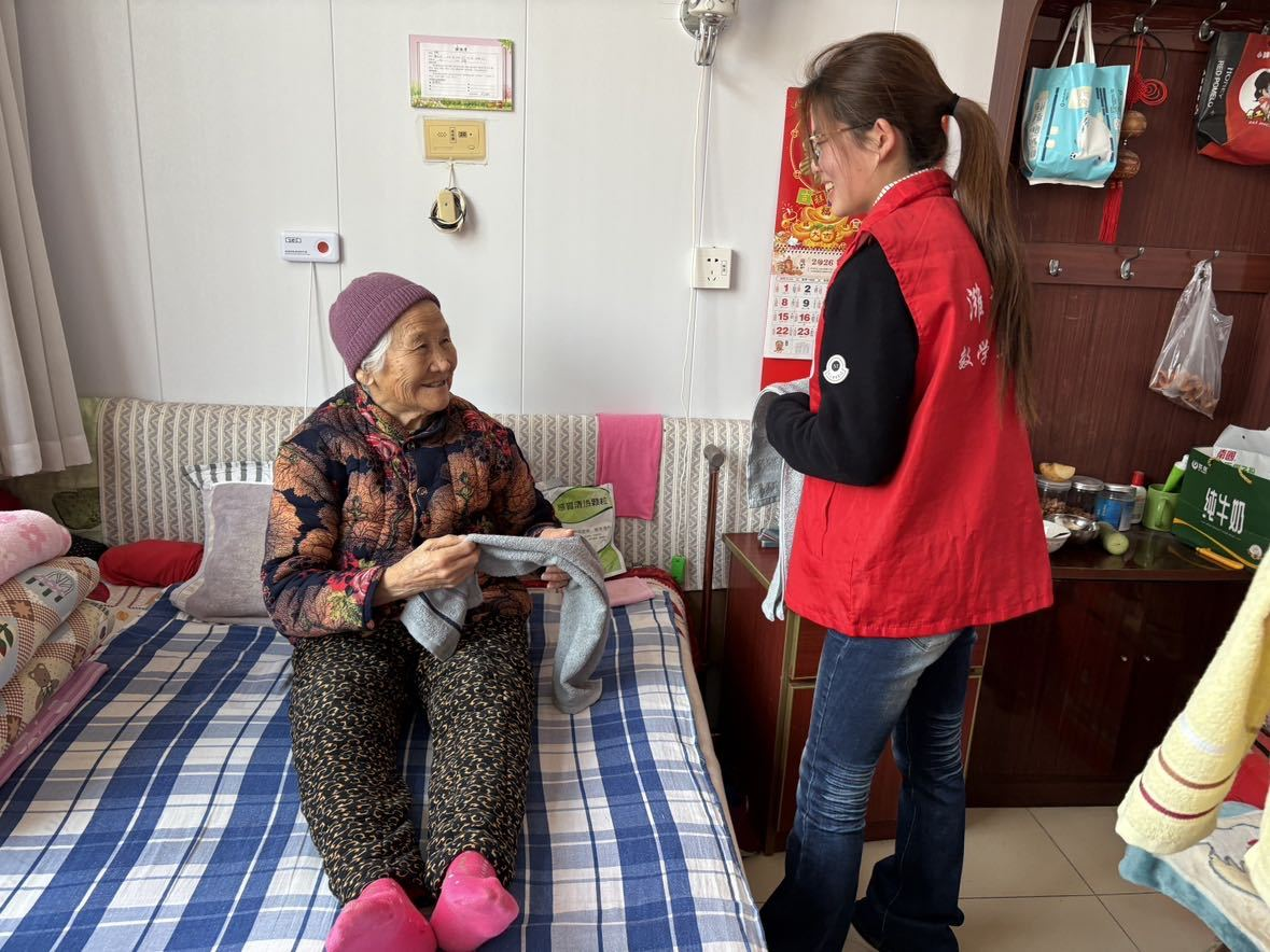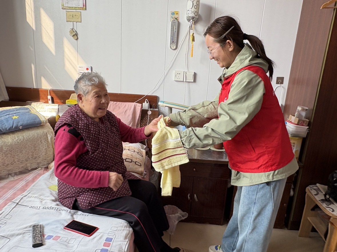 志愿者们在工作人员引导下迅速分组、有序投入服务。部分志愿者将承载着关怀与陪伴的慰问品逐一送到老人手中,让老人们切实感受到浓浓的爱意,在细微之处提升生活舒适,也在情感上带来了温暖与慰藉。