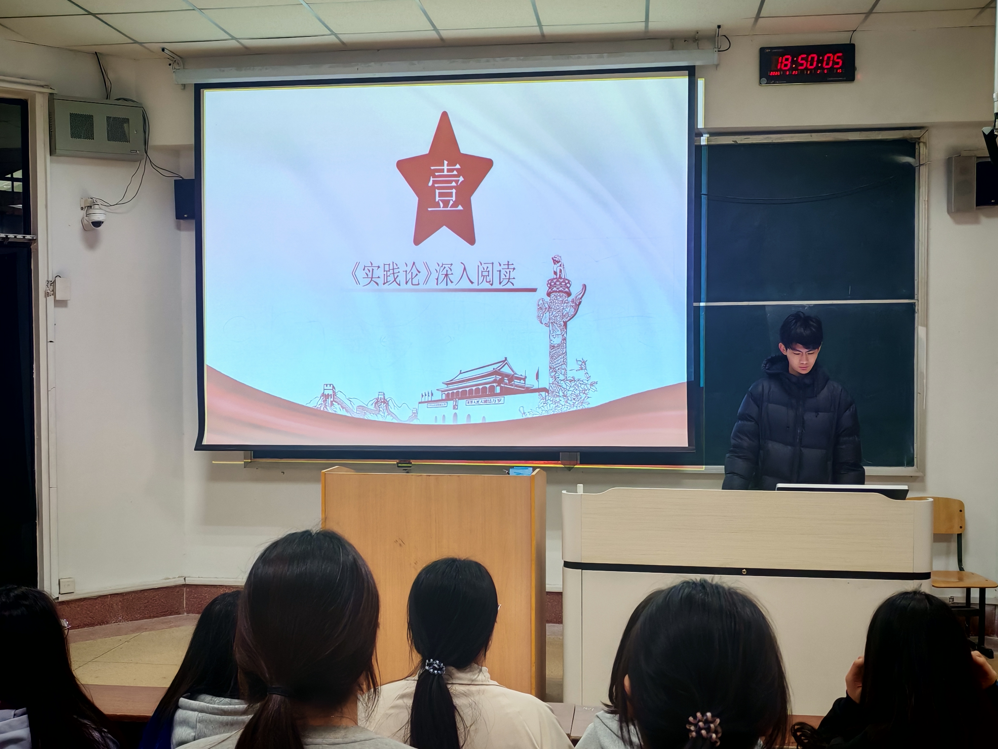 本次活动以“循实践论,铸思想之魂” 为主题,围绕《实践论》开展专题研读与交流探讨。活动中,小组成员孟亭宜带头领学《实践论》核心观点与精髓要义,系统阐释了实践在认识起源、发展、检验中的基础地位与重要作用。李晓爽结合相关研究文献作专题汇报,从理论内涵、时代价值两个维度展开深度分享,结合当下青年学习实践的实际案例谈理解、谈感悟,进一步加深了全体成员对“实践出真知” 这一重要论断的深刻理解,现场交流研讨氛围浓厚。