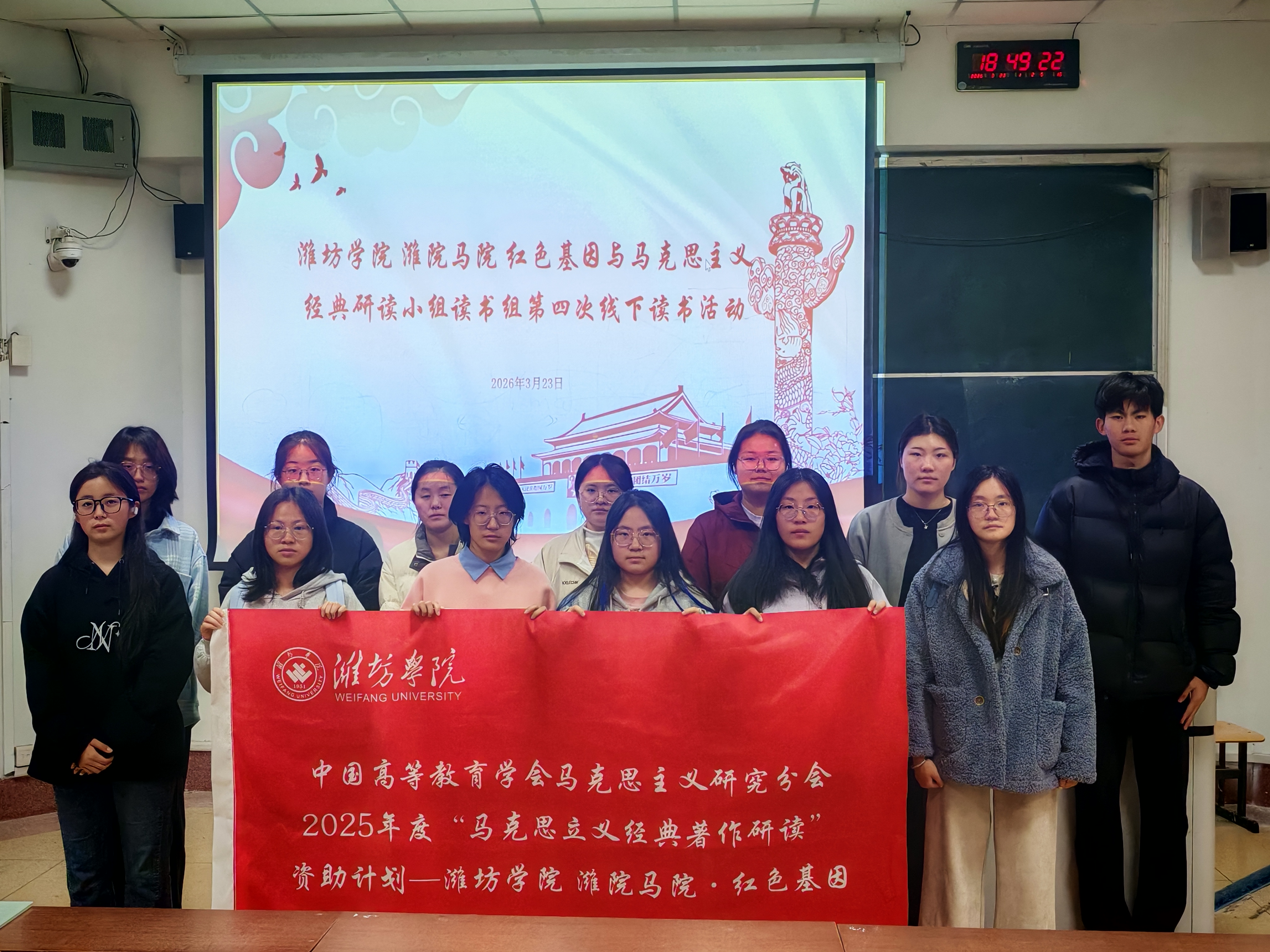为持续深化马克思主义经典著作研读,引导青年学生在精读细研、学思践悟中筑牢思想根基、提升理论素养,3月26日,马克思主义学院在2210教室举办潍院马院·红色基因与马克思主义经典研读小组读书组第四次线下读书活动。