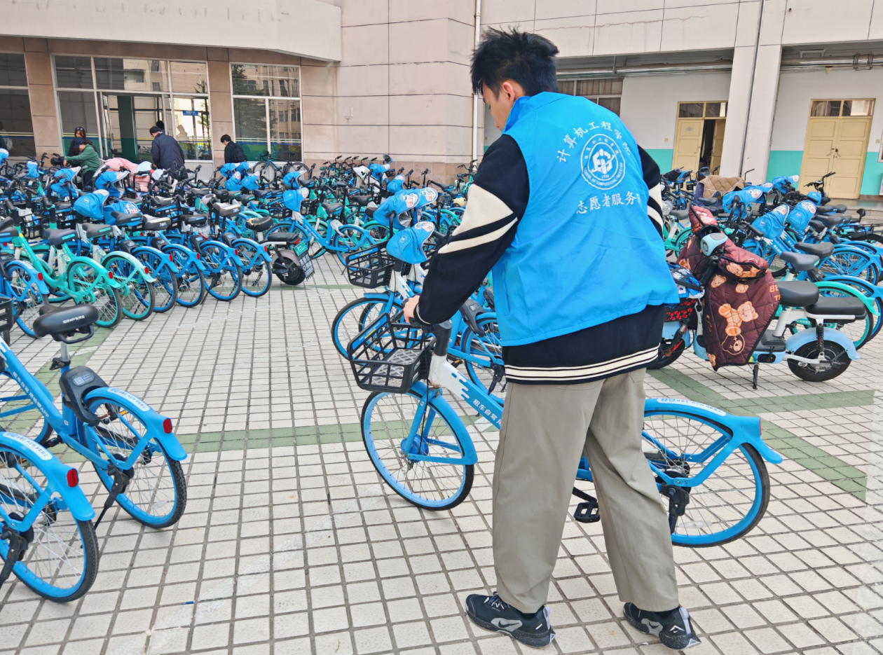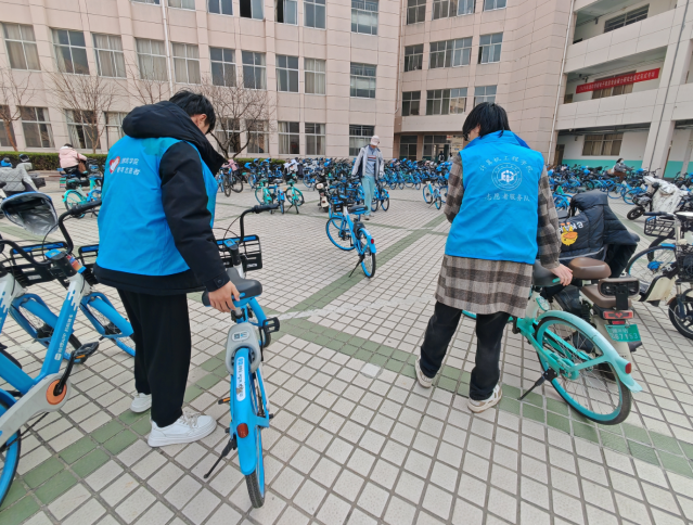 活动期间,志愿者们每个工作日提前集合,明确分工、各司其职。志愿者们手持工具,对校园内乱停乱放、占用消防通道和人行过道的自行车、电动车进行逐一排查与集中整理。面对摆放杂乱的车辆,志愿者们耐心细致地将其搬移至指定停车区域,严格按照停车线规范摆放,确保车辆排列整齐、朝向一致,有效疏通了校园通行要道,保障了师生出行安全与顺畅。
