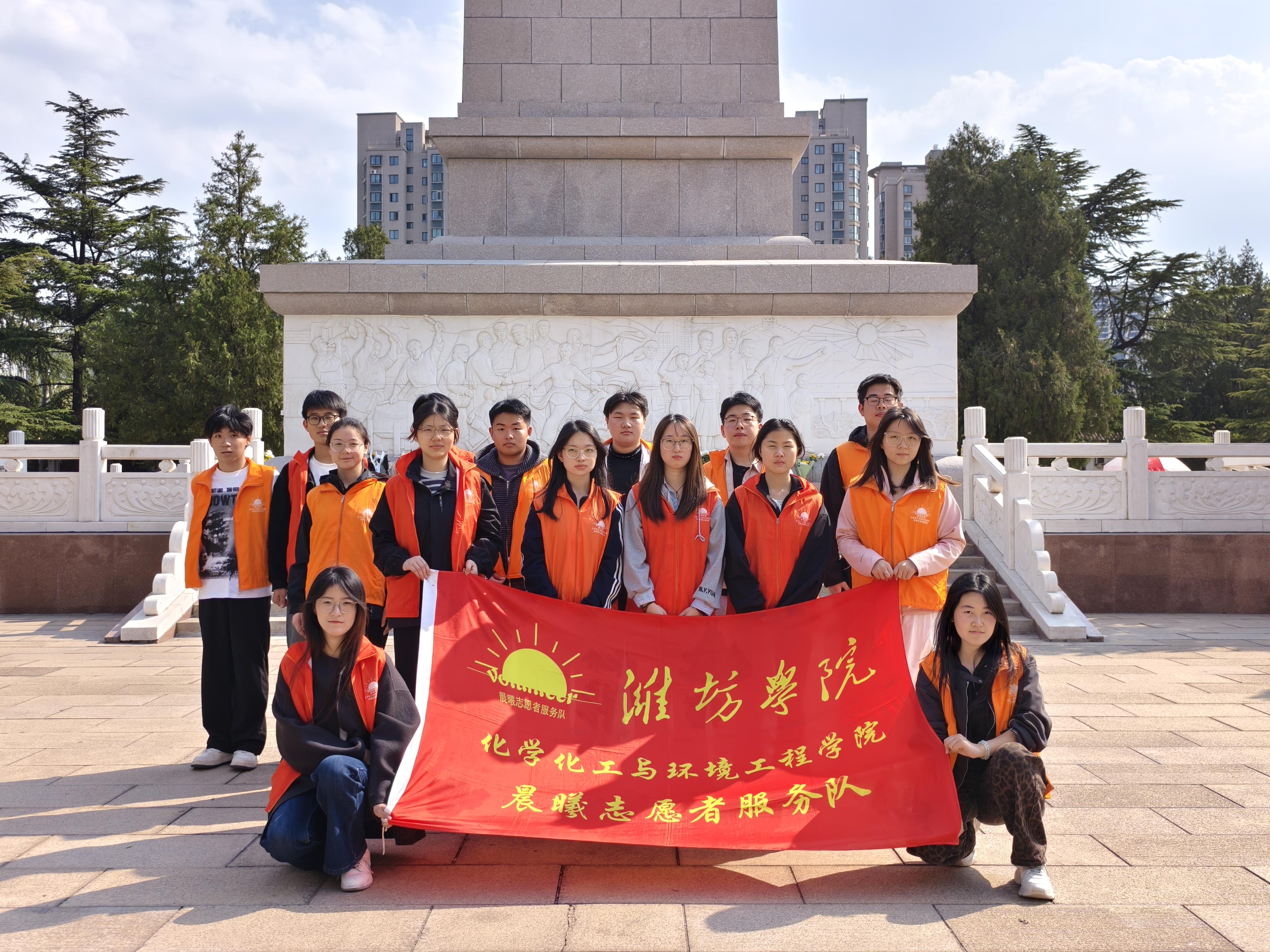 为深切缅怀革命先烈的不朽功勋,传承红色基因,厚植爱国情怀,2026年4月4日,化学化工与环境工程学院晨曦志愿者服务队走进潍坊烈士陵园,开展“祭扫烈士陵园,赓续红色血脉”主题活动,以实地参观、祭扫缅怀的方式,追忆峥嵘岁月,致敬英雄先烈。