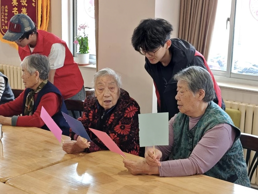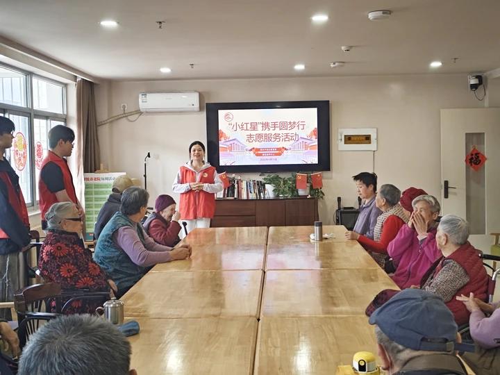 为传承尊老敬老的传统美德,践行新时代志愿服务精神,4 月 11 日上午,传媒学子作为市党史教育馆“小红星志愿服务”队成员走进潍坊市馨悦·樱园康养中心开展了“小红星携手圆梦行”志愿服务活动,他们以趣味为桥,以陪伴为暖,为老人编织一段欢声笑语的春日时光。