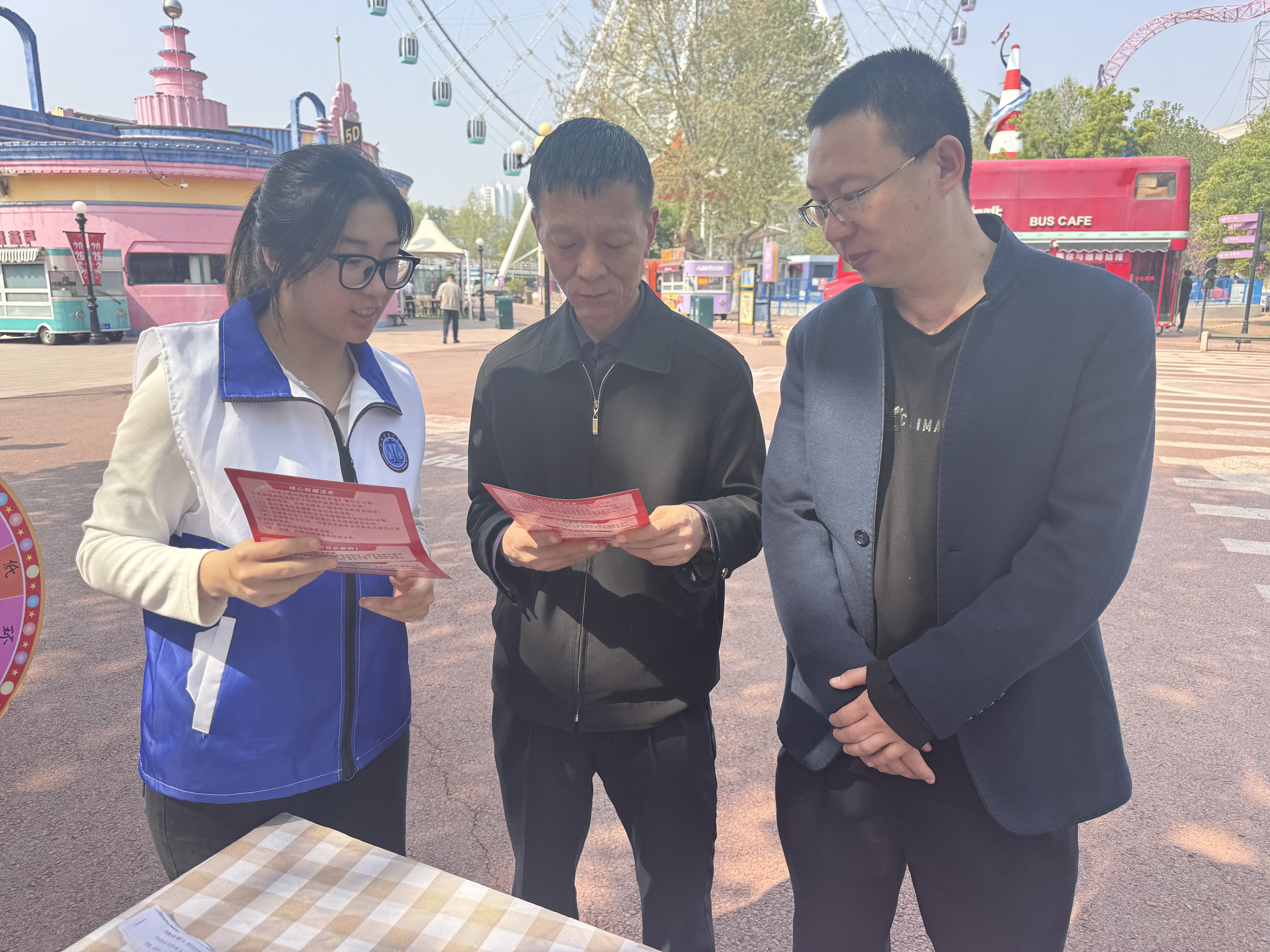 社区宣讲结束后,志愿者们走进富华游乐园,面向往来游客发放国家安全教育宣传手册,针对不同群体耐心讲解安全知识、细致答疑解惑,将国家安全理念融入群众日常,进一步拓宽安全教育宣传覆盖面,提升宣传实效。