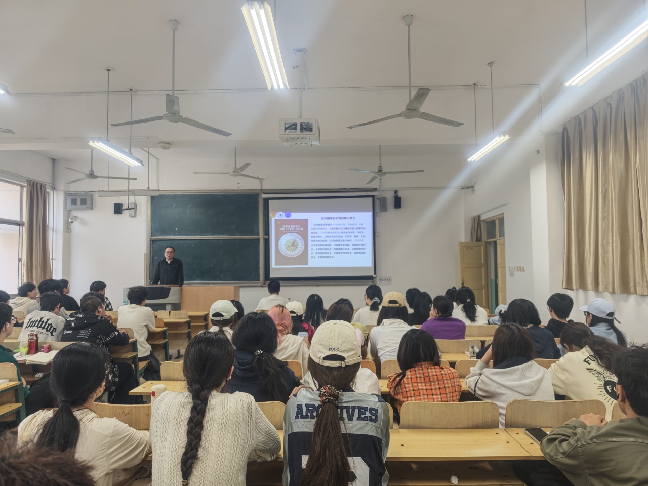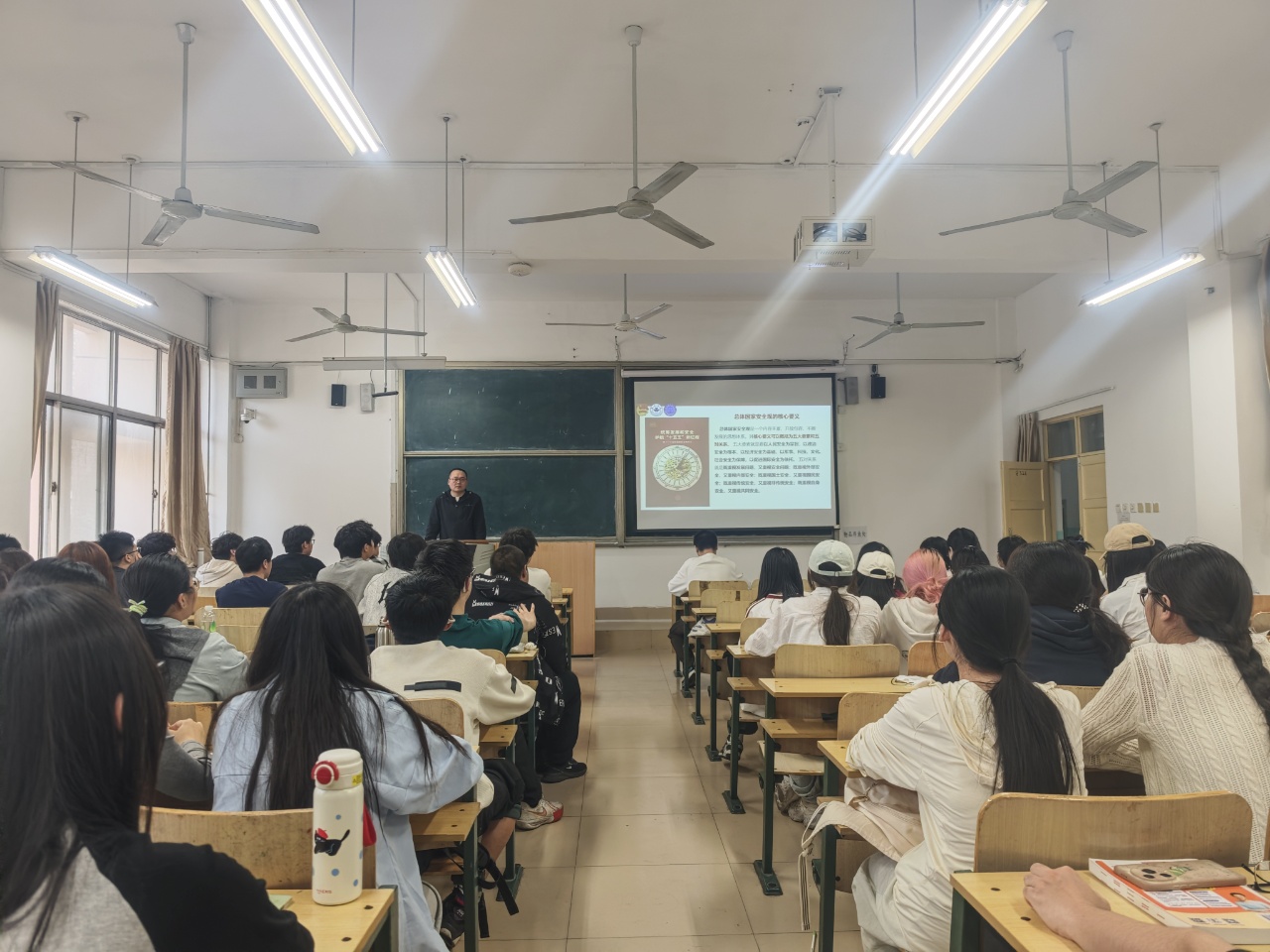 团课上,刘雪乾系统阐释了全民国家安全教育日的设立背景与核心意义,全面解读了总体国家安全观“五大要素”“五对关系”“十个坚持” 等核心要义,结合当前国家安全形势,厘清国家安全的系统性特征,打破“国家安全离青年遥远”的认知误区。同时,立足法学专业特色,聚焦《国家安全法》《反间谍法》《网络安全法》等法律法规,围绕政治安全、网络安全、数据安全等重点领域,通过典型案例剖析、法律条文解读,生动阐释各安全领域的法治边界与法律责任,引导同学们运用专业知识精准识别风险、守法用法。