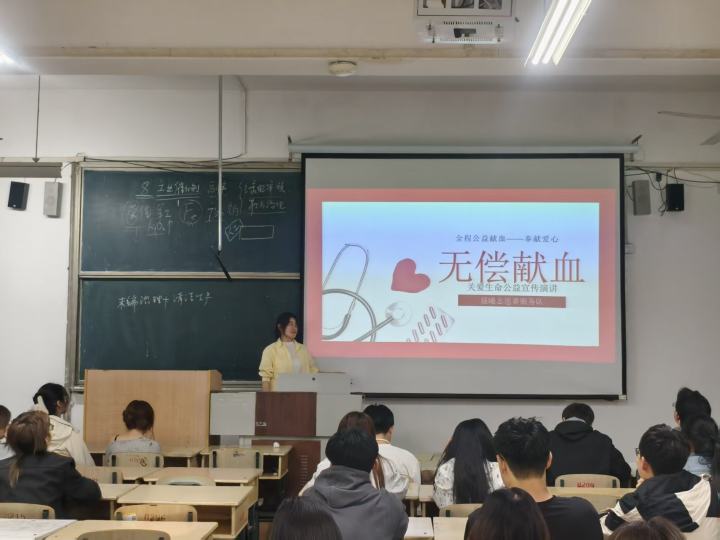 为弘扬“奉献、友爱、互助、进步”的志愿精神,普及无偿献血科学知识,号召广大青年学子以热血践行社会责任,2026年4月14日晚,潍坊学院化学化工与环境工程学院晨曦志愿者服务队走进大一各班级,开展无偿献血主题宣传活动。