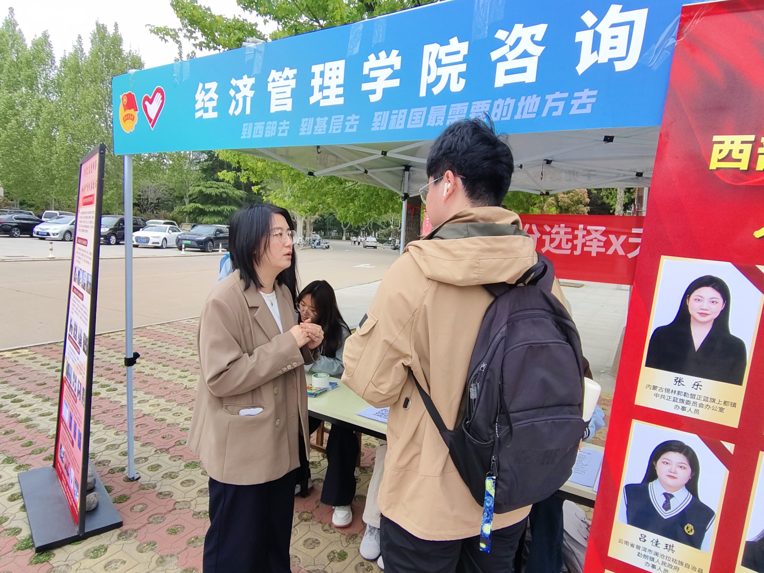 为深入落实大学生志愿服务西部计划的招募工作部署,潍坊学院于4月16日在图书馆南广场举办西部计划嘉年华活动。经济管理学院积极参与,并以此为契机,进一步推进西部计划的招募与宣传工作。