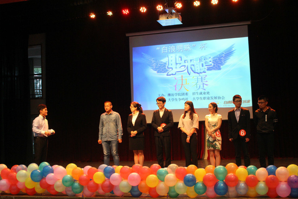 5月8日下午两点半,由潍坊学院团委主办,大学生争鸣社、大学生职业发展协会承办的第四届职来职往校园招聘会在闻韶楼报告厅举行。经过了前面忙碌而充实的宣传、初赛、复赛、决赛宣传四个准备阶段,本次正式决赛更是决定整场活动效果的关键。 本次决赛请到了图书馆馆长侯麓、发展规划处处长曲振国、启航就业培训中心吉祥、长城证券资深客户经理江鲁担任评委,以及山东华康福寿养老产业有限公司、山东乐果贸易有限公司、山东十笏园食品有限公司、 泰华白浪明珠梦幻乐园、潍坊高新区挖能教育培训学校、潍坊经济开发区英途雅思英语教育学校、茗艺国际化妆学校、生命之树集团、瀚洲国际、潜能影业等企业代表来担任此次嘉宾。比赛一开始,主持人就向在场评委以及观众介绍了比赛大体流程。每个选手都要经过初次印象测评、职业能力测评、综合能力测评三个环节,并与现场的企业代表进行互动,表现优异者可以当场获得来自企业的邀请书。场内外观众和工作人员也可以通过微博话题随时参与活动。主持人介绍完毕后,参赛选手们按照抽签决定的顺序上台,通过演讲和PPT向全场进行自我展示,这其中包括阐明自己所期待的职位,说明个人对于所期待职位的理解、自己胜任此职位的优势以及自身工作经历、感悟等,努力将自己最好的一面展现给评委嘉宾。选手们在舞台上自信满满,意气风发,展现出了潍院学子们昂扬向上的精神风貌。在四位选手登台过后,比赛进入中场休息环节,外场由争鸣社的张硕在缓解比赛紧张气氛的同时向观众送出了本次比赛的特别礼品——由白浪明珠梦幻游乐园提供的游乐套票。随后,来自争鸣社文艺部的金皓昕同学上台演唱了一首《开门见山》,引发了现场热烈的回应和掌声。中场环节结束后,其余三位选手依次上台继续向全场展示了他们的精彩表现。 参赛选手们的自我展示结束后,根据评委的打分,主持人向全场公布了比赛结果:一等奖梁倩茹,二等奖格日勒、张广远,三等奖张传路、陈欣、高鹏、温思帅。比赛虽有名次先后,但每位选手都得到了企业的认可,获得了来自企业的邀请书,赢取了在企业直接实习的机会。随后,发展规划处处长曲振国给在座的所有同学提出了发展建议。曲处长认为,大学生应该有着求职的终极目标,而且在日常学习过程中,也要学会站起来看待这个社会。一个人想要实现自身价值,只能依靠自己的能力,故而做好能力规划也是极为重要的。同时,曲处长建议同学们,在求职过程中应当正确看待和处理社会需求、职位需求与自身的关系。相信在座同学们一定能从曲处长精彩的发言中得到自己的感悟。最后,嘉宾评委们为选手颁发证书,并合影留念。职来职往校园应聘大赛在热烈的掌声中落下帷幕。 本次活动主要侧重于引导学生就业观念的转变,正确对待就业、择业和创业。并提高在校大学生的应聘和就业技巧,增强学生的心理素质,提高学生求职能力和社会竞争力,从而进一步为学生走出校门选择工作强化基础。而本次活动的成功举行,离不开潍院团委的大力支持以及大学生争鸣社、大学生职业发展协会成员的团结协作。相信不管是选手、工作人员还是观众,都会有不少的收获。祝愿“职来职往”能够在我们的共同努力下,越办越好! |